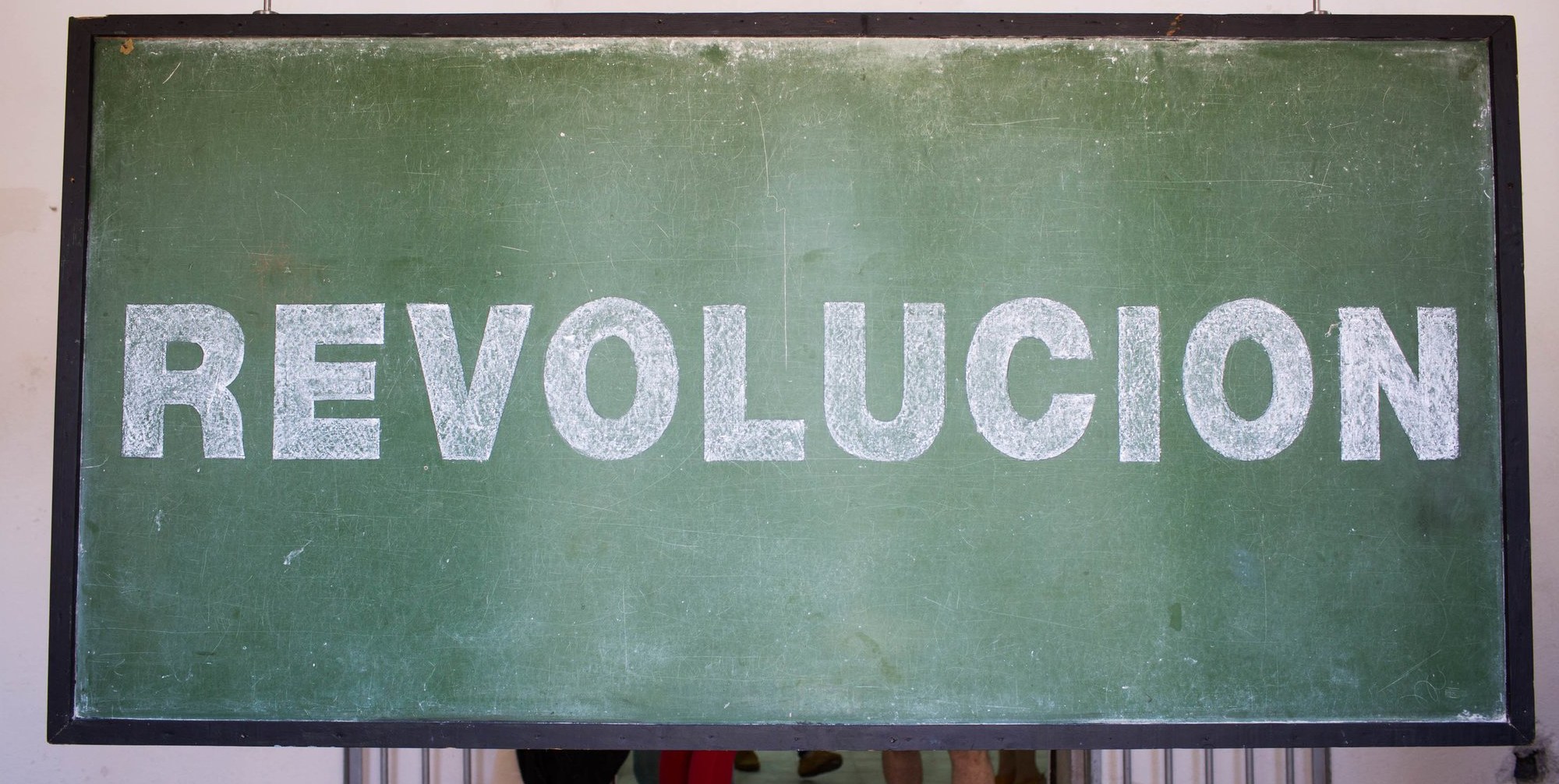 Such paradoxes were only magnified on the grounds of the Havana Biennial. I was impressed and surprised by the volume of politically loaded art in a state-authorized art fair. Artist Lidzie Alvisa, a Havana native, departed from her photographic explorations of the body to install a green chalkboard with the word “Revolucion,” erased and rewritten several times. Cuban artist Arlés del Río hung colorful, elongated snorkel tubes from the ceiling, like plastic stalactites; the snorkels a symbol of leisure, but also tools for swimming underwater, undetected by those policing the shores. Another artist (whose name, sadly, I did not record and cannot locate in Google searches) presented a simple photograph of the ocean, with a black light dangling nearby. When a viewer raised the black light to the image, the ghostly letters of at least a hundred names appeared—the names of those who had died trying to flee the island in times of crisis. Perhaps the biggest illogicality of all was learning that the artist Kcho, whose frequent use of boats conjures both Cuba’s fishing economy and the desperate exodus of its citizens, was one of Fidel Castro’s favorite artists. (As a symbol of the island’s physical and socio-political isolation, the ocean is an important and consistent theme for Cuban artists.)